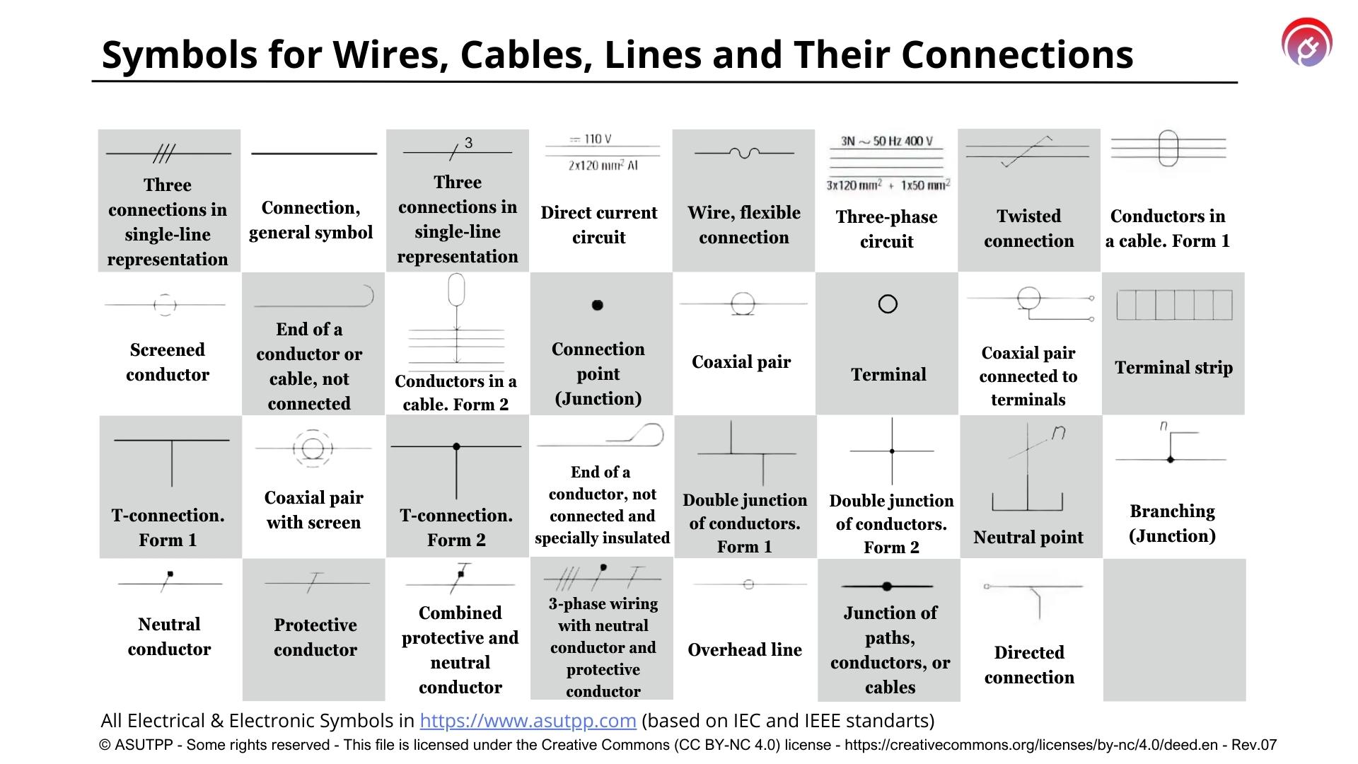 This table with symbols for wires, cables, lines and their connections was created by me after studying the relevant normative documentation – IEC and IEEE.